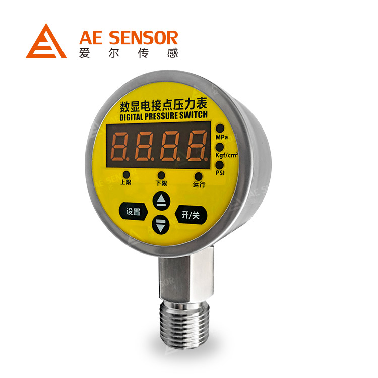 南京愛爾傳感生產的AE-P是一款集壓力測量、顯示、控制于一體的新型電接點壓力表,設置方便,具有一鍵清零,壓力單位切換能多種功能,應用于液壓機、注塑機、高壓清洗機、熱工機械能設備配套。